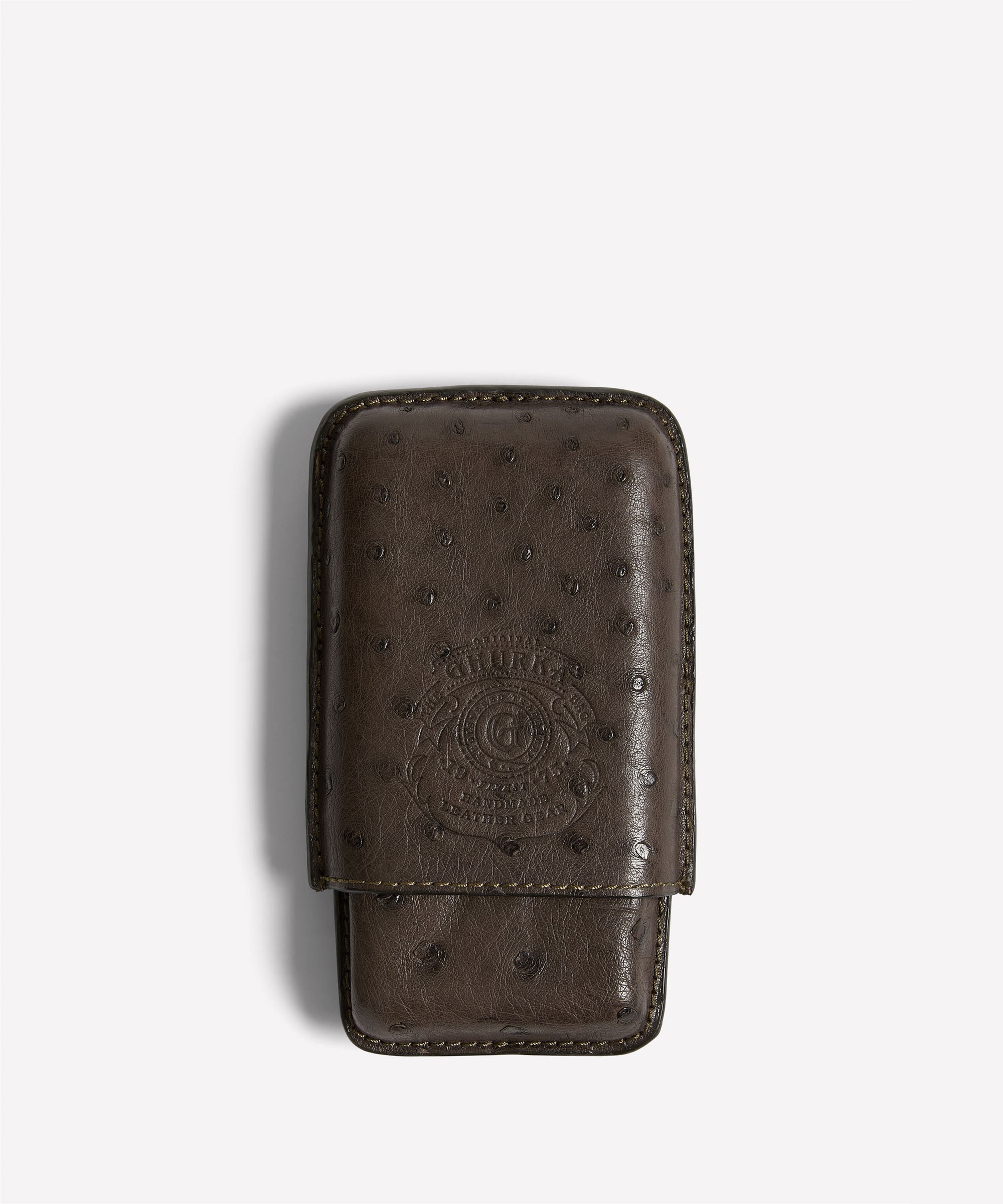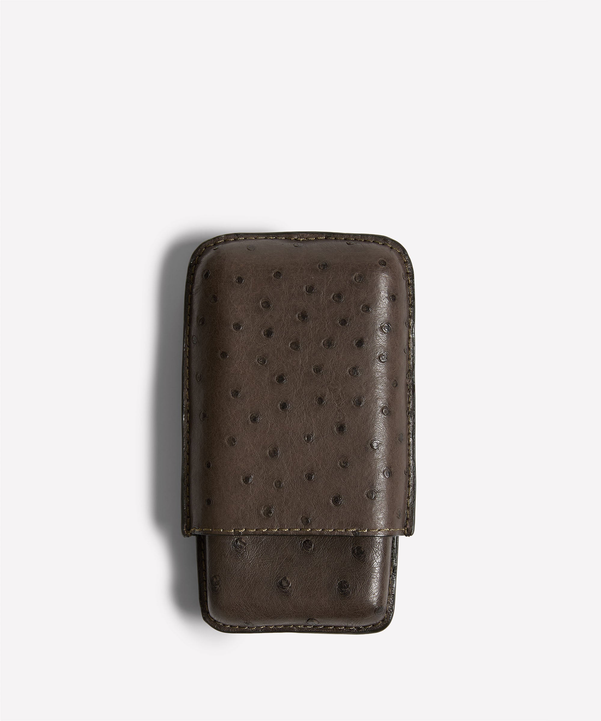 The Triple Cigar Case No. 237 offers a compact and protective way to carry three cigars. Crafted in full quill ostrich, its structured form helps safeguard cigars in a pocket or travel bag.